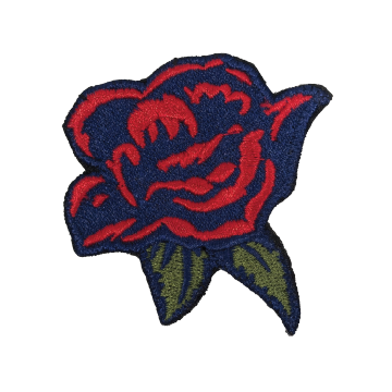 Heat applied embroidered patch A blooming red rose set against a navy background with green leaves. Size: 2.5 inches wide x 2.5 inches tall Compatible with Cotton, Polyester, Cotton/Poly Blends Iron out wrinkles and excess moisture in your garment then press at 360°F for 15-20 seconds Machine wash cold.